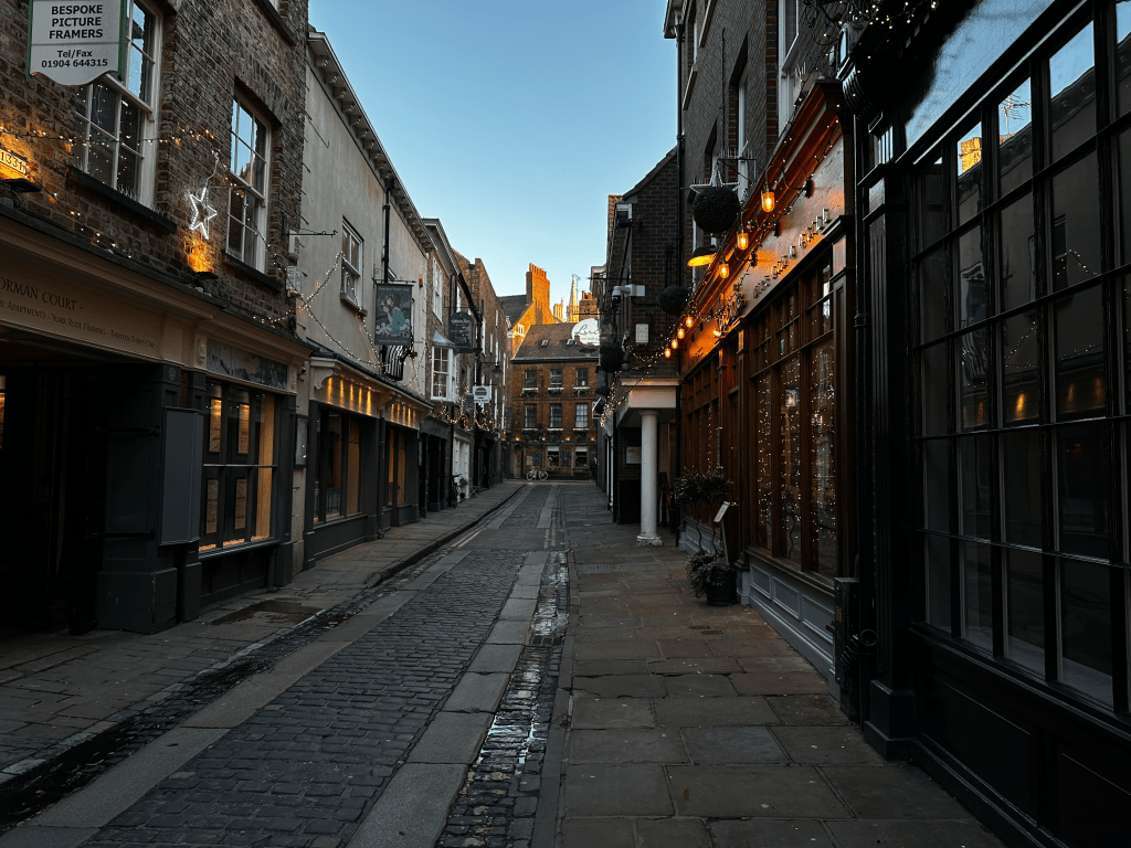 A street in York an hour or so after sunrise on a January morning.